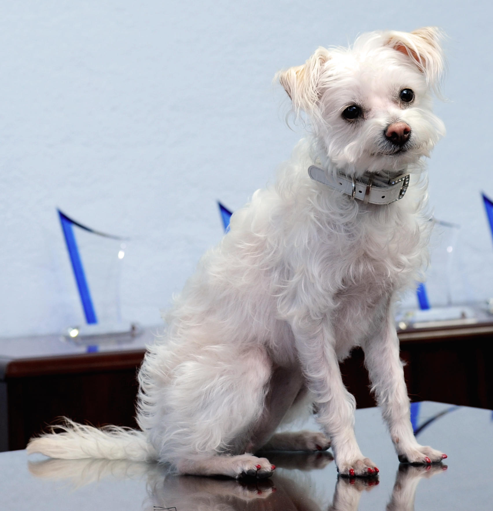Hi, my name is Miss Courage! How may I help you? I accept treats as a form of payment. My job duties are hugs and kisses. Stop by the office today! I look forward to belly rubs.
